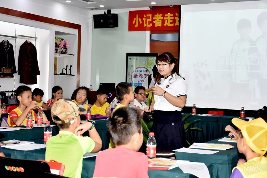 隨后,小記者們來到新希望學(xué)生裝生產(chǎn)企業(yè)百裕集團(tuán)營(yíng)銷中心,齊聚服裝展示廳共同深入探討學(xué)生裝知識(shí)。會(huì)上,小記者們共同觀看了“學(xué)生裝生產(chǎn)流程視頻”,并回顧往年“新希望”學(xué)生裝款式等內(nèi)容。