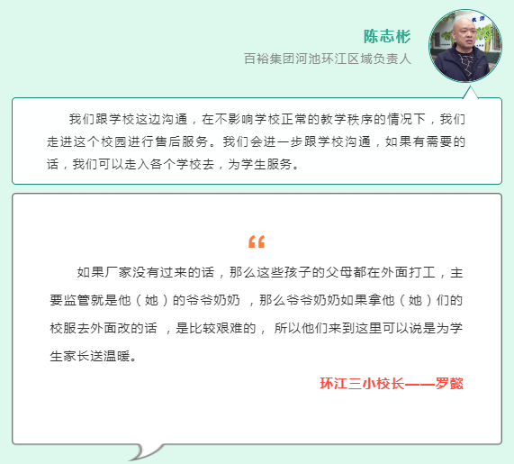11月22日,在環(huán)江毛南族自治縣第三小學(xué)的校園內(nèi),到處是孩子們爽朗的笑聲和濃濃的愛(ài)意,百裕集團(tuán)環(huán)江裕美扶貧車(chē)間的“針心針意”售后服務(wù)走進(jìn)校園,為孩子們送來(lái)了便利。