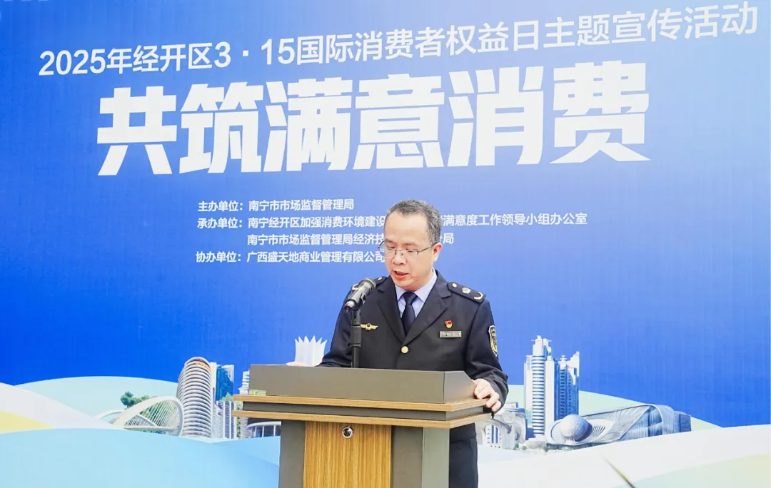 會議伊始,南寧市市場監(jiān)督管理局經(jīng)濟技術(shù)開發(fā)區(qū)分局負(fù)責(zé)人龍漢傳發(fā)表了重要講話。他強調(diào),消費者權(quán)益保護是市場經(jīng)濟健康發(fā)展的基石,關(guān)乎每一位市民的切身利益 。各單位、各企業(yè)應(yīng)高度重視消費者權(quán)益保護工作,積極履行社會責(zé)任,共同為消費者創(chuàng)造一個公平、公正、誠信的消費環(huán)境。
