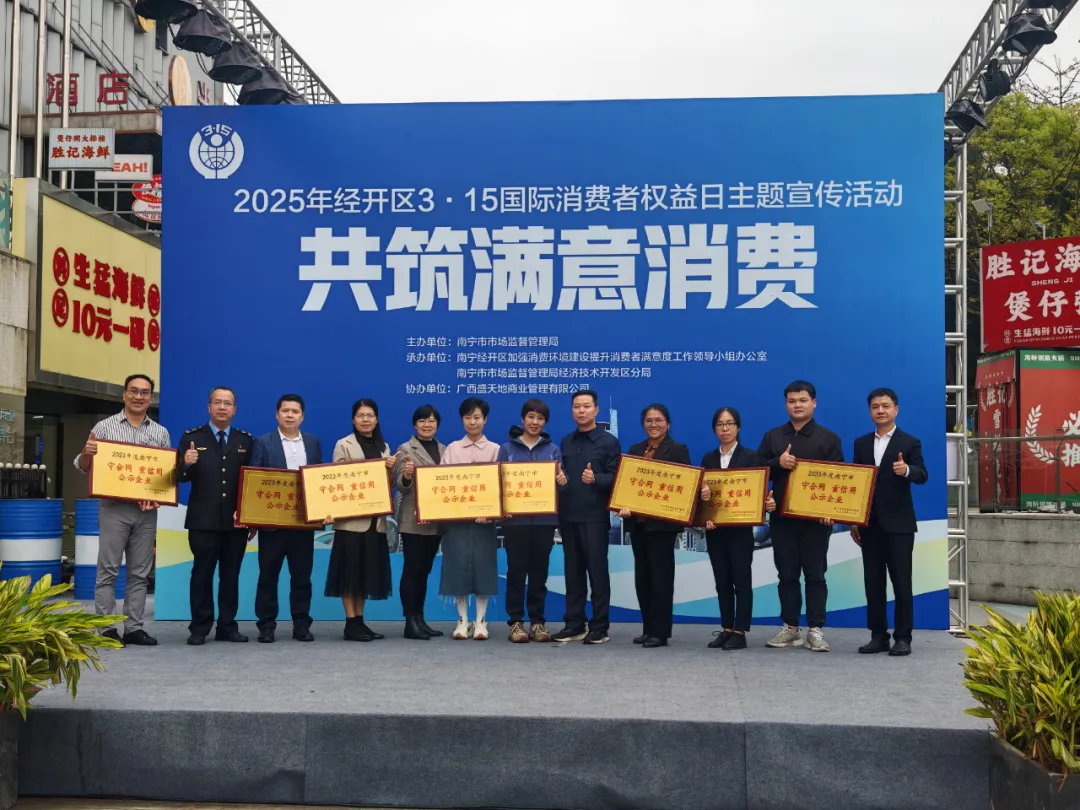 為深入貫徹落實“共筑滿意消費”的消費維權(quán)年主題,3月14日,南寧市市場監(jiān)督管理局經(jīng)濟技術(shù)開發(fā)區(qū)分局聯(lián)合多部門,在江南盛天地舉辦“3?15”國際消費者權(quán)益日宣傳活動。百裕集團作為企業(yè)代表受邀參與,與政府部門、行業(yè)同仁共同助力消費維權(quán)與誠信建設(shè)。