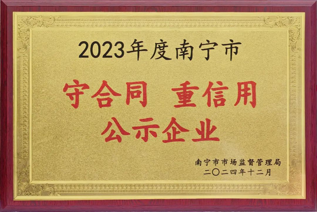 在授牌儀式環(huán)節(jié),百裕集團獲得“守合同重信用公示企業(yè)”牌匾,這一榮譽是對公司長期以來嚴(yán)格履行合同義務(wù)、誠信經(jīng)營的高度認(rèn)可。作為廣西質(zhì)量管理標(biāo)桿企業(yè),百裕集團始終堅持以品質(zhì)樹立品牌,堅持誠信經(jīng)營的企業(yè)宗旨,筑牢企業(yè)誠信“防火墻”。