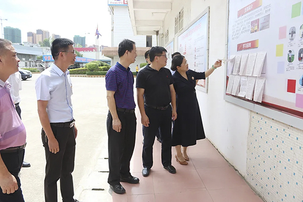 6月23日,廣西自治區(qū)黨委組織部組織六處處長梁燕海一行到百裕實(shí)業(yè)開展兩新組織黨建工作調(diào)研,梧州市委組織部副部長黃杰梅,岑溪市委常委、組織部部長蔣新軍等陪同調(diào)研。