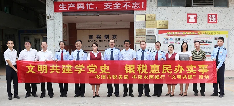 為充分發(fā)揮文明單位的示范輻射和帶動作用,推動全行黨員干部積極投身于學史踐初心,為民辦實事的主題活動中,4月13日上午,全國文明單位岑溪農(nóng)商銀行聯(lián)合岑溪市稅務局共同舉辦“文明共建學黨史 銀稅惠民辦實事”系列活動,組織黨員干部通過觀看視頻、黨史分享、知識問答等形式,加深對黨史知識的認識和理解,堅定了共產(chǎn)主義信念,同時組織交流團對百裕集團生產(chǎn)中心進行交流走訪,建言獻策。