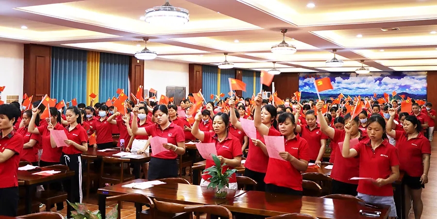 全體員工大合唱《沒有共產(chǎn)黨就沒有新中國(guó)》和《歌唱祖國(guó)》,表達(dá)對(duì)黨的深情祝福。