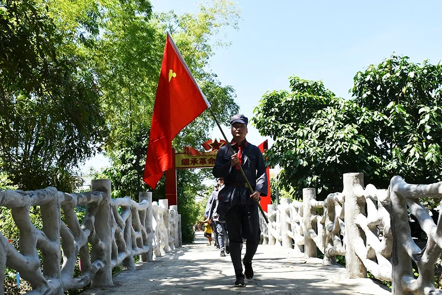 當(dāng)天,參加活動(dòng)黨員干部懷揣著敬慕與感恩之心,穿上紅軍服戴上紅軍帽,模擬紅八軍建制,編隊(duì)整訓(xùn),沿著革命先輩的足跡,徒步重走一次紅軍路,舉行簡(jiǎn)單的授旗儀式后,學(xué)員們高舉旗幟,從水隴徒步至甫茶,追憶紅軍革命精神,傳承紅色精神!