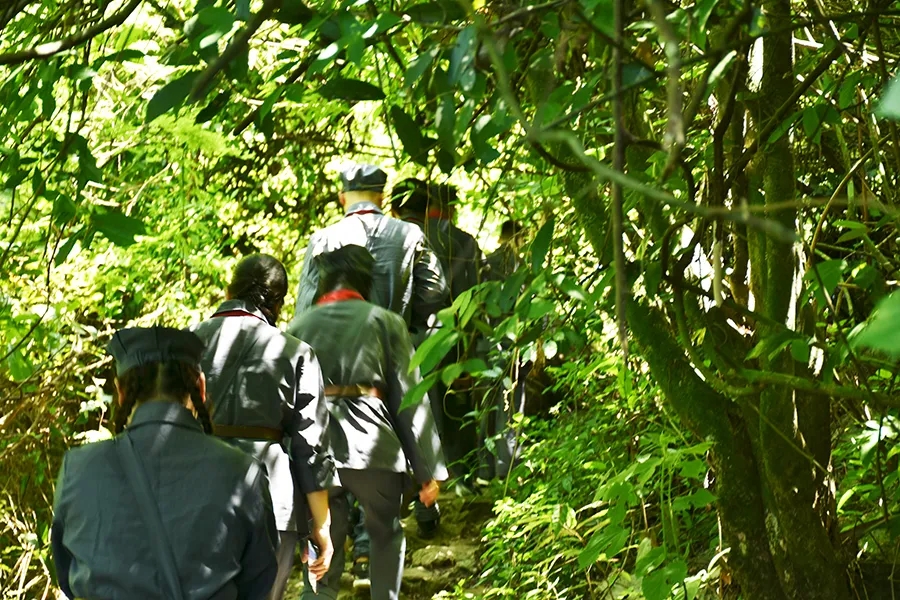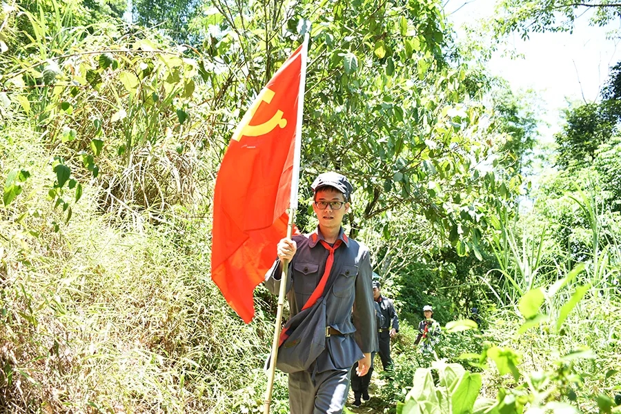 途中,黨員干部了解了鄧小平領(lǐng)導(dǎo)的紅八軍和左江革命委員會(huì)舉行反帝斗爭(zhēng)、張?jiān)埔萃驹谄今R勝利會(huì)師等龍州起義歷史故事,唱著紅歌,走在蜿蜒崎嶇的山路上,黨旗迎風(fēng)飄揚(yáng),黨員干部體驗(yàn)了革命的艱辛和困苦,同時(shí)感受紅軍無所畏懼、勇往直前的使命和擔(dān)當(dāng)。