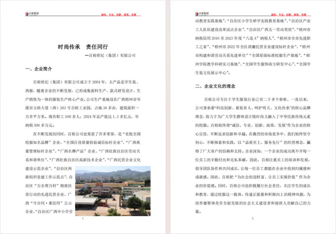 百裕集團自2004年成立以來,始終秉持“誠信、專業(yè)、創(chuàng)新、高效、發(fā)展”的核心宗旨,堅持“為社會創(chuàng)造財富、讓員工實現(xiàn)價值”的企業(yè)價值觀。多年來,集團不僅在學生裝、西服等主營業(yè)務領域持續(xù)深耕,更將履行社會責任融入企業(yè)戰(zhàn)略和日常運營,實現(xiàn)了經(jīng)濟效益與社會效益的協(xié)同發(fā)展。
