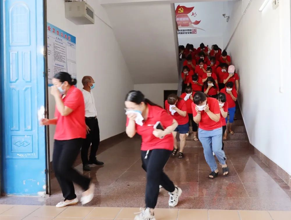 (三)消防應急逃生演練。全體員工進行了濃煙體驗緊急逃生模擬火災情景,參與實訓的員工在黃班長的指導下,捂住口鼻,俯著身,沿著墻面,全體員工在密閉的環(huán)境下演練正確逃生方法。整個撤離演練歷時一分半鐘,做到了快速、安全、有序。