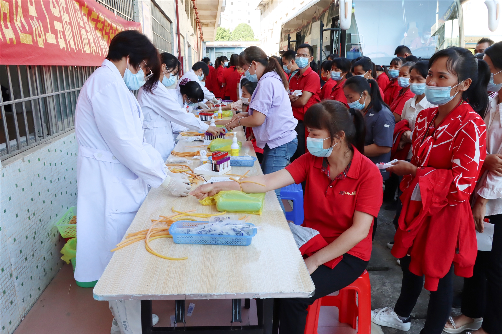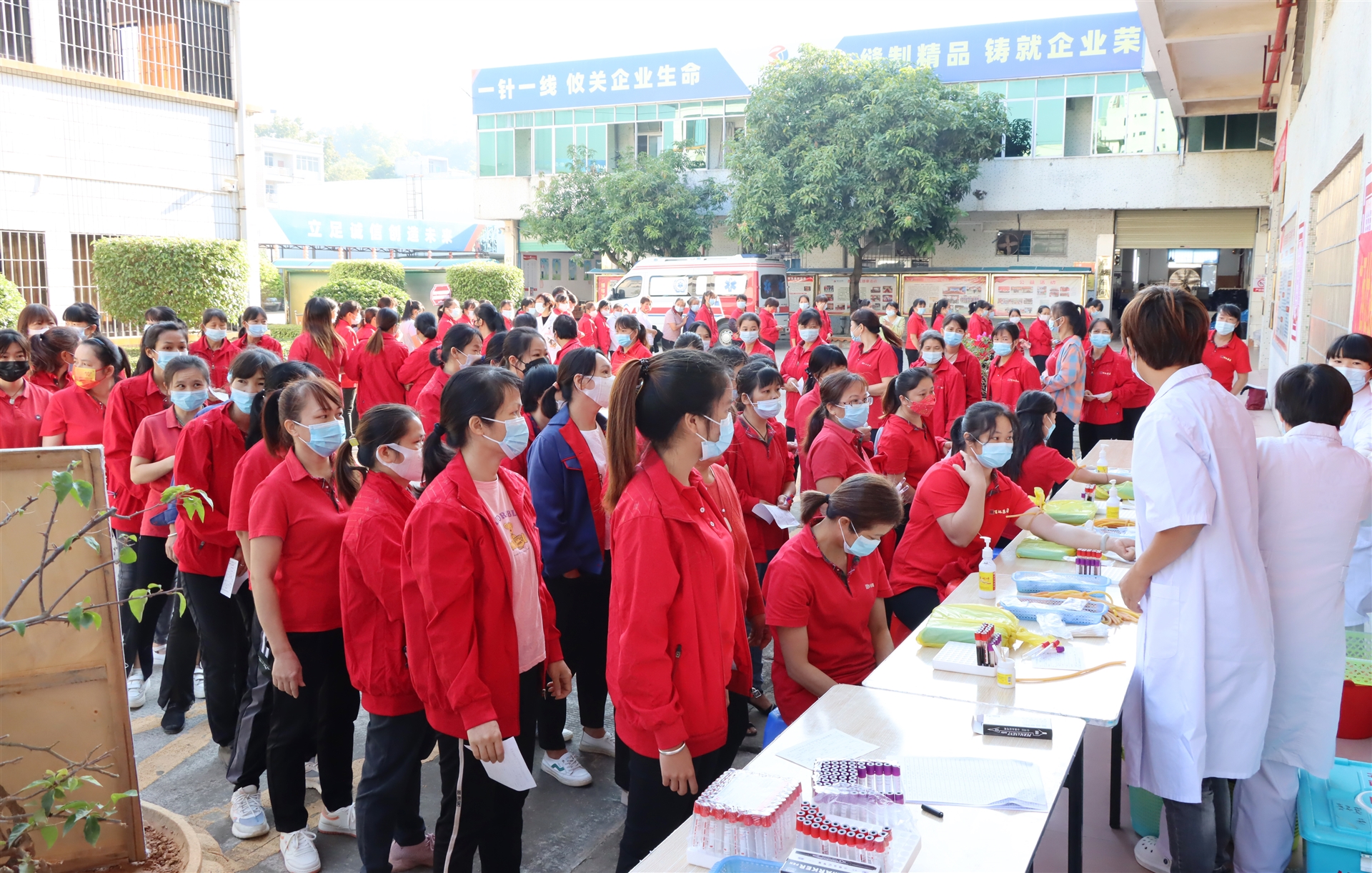 本次送健康體檢服務(wù),由廣西壯族自治區(qū)總工會陸川溫泉療養(yǎng)院的12名醫(yī)護(hù)人員上門開展,10月14日一早,體檢醫(yī)護(hù)車開進(jìn)了百裕工業(yè)園,為百裕200多名一線產(chǎn)業(yè)工人提供:血液化驗(yàn)、B超、肝/腎功能、心電圖、DR胸部影像、癌癥篩查等12項(xiàng)體檢內(nèi)容。