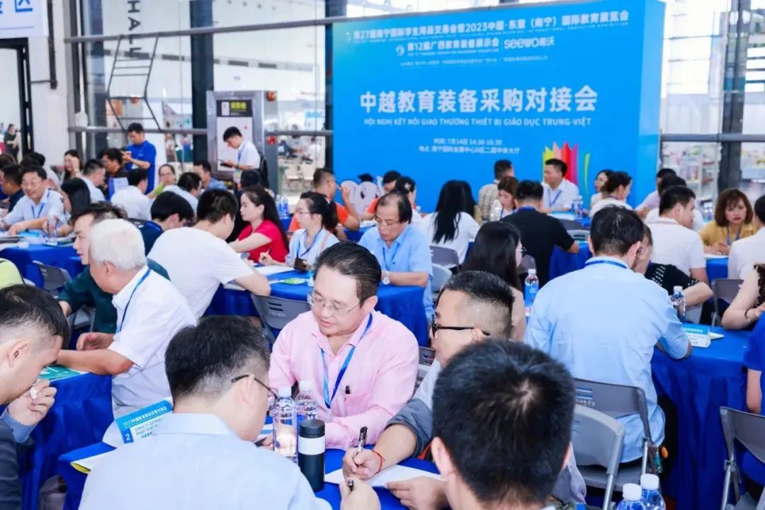 現(xiàn)場活動豐富:有中越教育裝備采購對接會為雙邊企業(yè)進行精準B2B高效撮合,探索跨境商業(yè)合作新機遇;廣西中小學創(chuàng)新實驗優(yōu)秀案例展示交流活動體現(xiàn)廣西地域民族文化特征和教育科技創(chuàng)新精神;