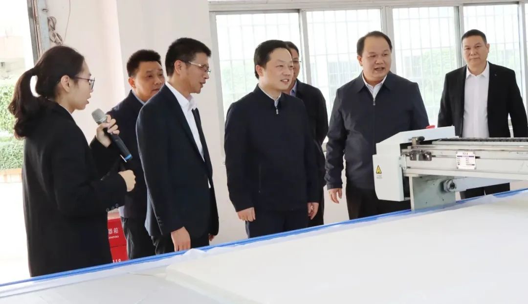 趙書記走進公司校服展廳、車間察看公司產(chǎn)品和生產(chǎn)線,邊走邊看,就產(chǎn)品研發(fā)、銷售推廣等與公司總經(jīng)理曾晏來深入交流。他希望公司在企業(yè)文化、品牌打造、銷路拓展上做足文章,不斷提升企業(yè)核心競爭力,實現(xiàn)更高水平、更高質量發(fā)展,為岑溪經(jīng)濟高質量發(fā)展奠定堅實基礎。