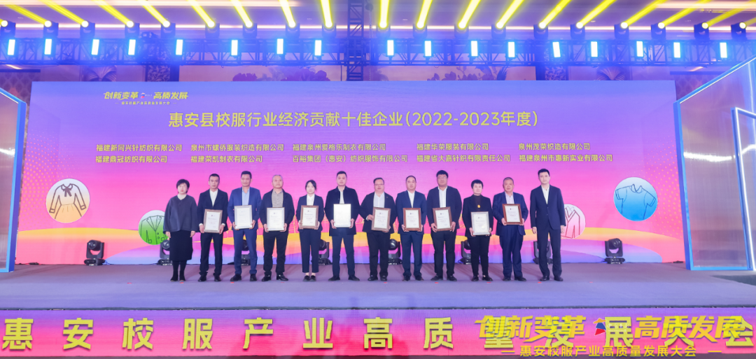 惠安縣校服行業(yè)經(jīng)濟貢獻十佳企業(yè)(2022-2023年度)授牌儀式