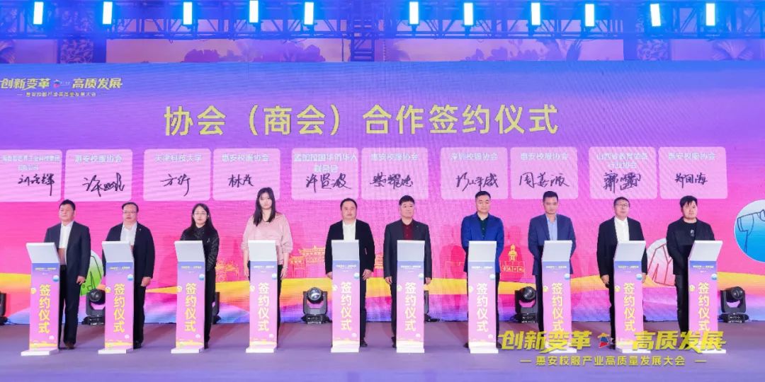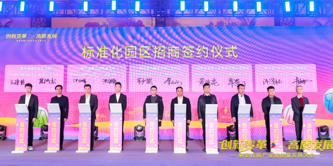 本次活動在中國教育裝備行業(yè)協(xié)會、中國教育后勤協(xié)會的指導(dǎo)下,由中共惠安縣委、惠安縣人民政府主辦。現(xiàn)場啟動校服產(chǎn)業(yè)高質(zhì)量發(fā)展大會系列活動,表揚并授牌惠安縣校服行業(yè)經(jīng)濟貢獻十佳企業(yè)(2022-2023年度),舉行校服行業(yè)企業(yè)家捐贈儀式和簽約儀式;縣工信商務(wù)局推介標(biāo)準(zhǔn)化園區(qū)并解讀校服產(chǎn)業(yè)惠企政策,縣校服協(xié)會發(fā)布校服高質(zhì)量發(fā)展倡議書。此外,行業(yè)協(xié)會、院校專家、校服企業(yè)有關(guān)代表以“惠安校服產(chǎn)業(yè)高質(zhì)量發(fā)展”為主題作交流發(fā)言;現(xiàn)場通過惠安校服產(chǎn)業(yè)發(fā)展宣傳片和校服品牌展示秀展現(xiàn)惠安校服產(chǎn)業(yè)發(fā)展現(xiàn)狀。
