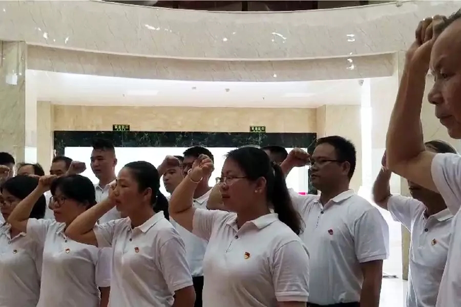 ★ 宣誓現(xiàn)場莊嚴(yán)肅穆,在領(lǐng)誓人謝勝海書記的帶領(lǐng)下,全體黨員面對鮮紅黨旗,莊嚴(yán)地舉起右手,重溫對黨的忠誠誓言。