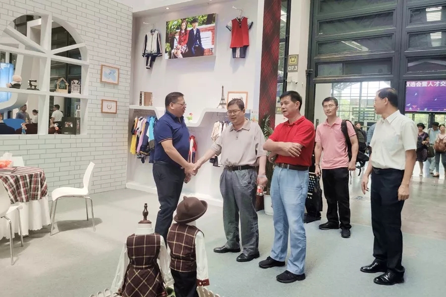 (深圳市教育裝備行業(yè)協(xié)會會長彭錦環(huán)(右一)蒞臨展廳指導(dǎo)工作)