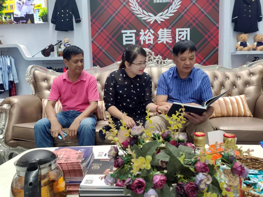 百裕集團(tuán)工作人員向現(xiàn)場來賓講解百裕校園時代當(dāng)季服裝的品牌理念和款式設(shè)計(jì)。時尚美觀又不乏個性的校園服飾引起了現(xiàn)場觀眾濃厚的興趣,大家紛紛駐足觀看、詢問交流。期間,工作得到了各級領(lǐng)導(dǎo)的現(xiàn)場指導(dǎo)。