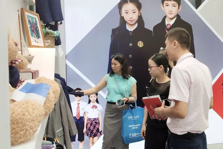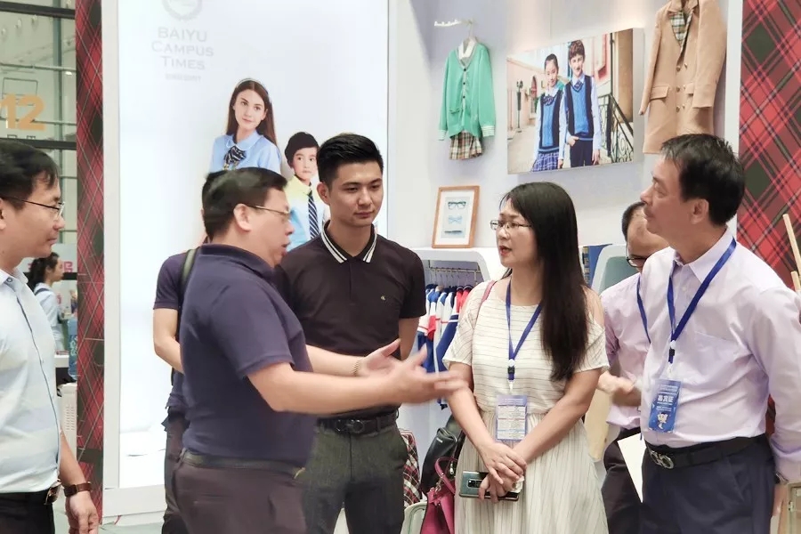 此次展會,百裕校園時代帶來的幼兒園、中小學(xué)禮服、運(yùn)動服等一系列校園服飾產(chǎn)品案例,可針對不同學(xué)校、地區(qū)需求給出最合理的方案?,F(xiàn)場大屏幕上滾動播放集團(tuán)介紹、品牌建設(shè)等視頻,以及現(xiàn)場產(chǎn)品實(shí)物的展示,吸引了眾多觀眾的眼球,并與銷售人員面對面溝通,展會現(xiàn)場氣氛熱烈。