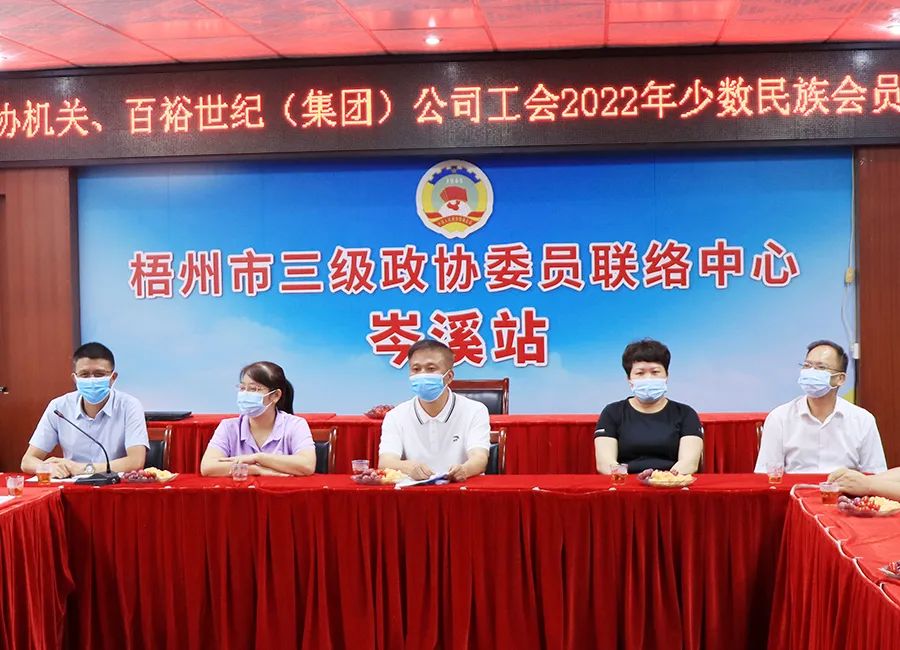 聯(lián)誼活動分為兩個階段進行,一是召開“市政協(xié)機關、百裕世紀(集團)公司工會2022少數(shù)民族會員座談會”,岑溪市政協(xié)主席韋學文、百裕世紀(集團)有限公司總經(jīng)理曾晏來等領導參加。會議議程首先是由市委統(tǒng)戰(zhàn)部副部長、工商聯(lián)黨組書記、民宗局局長(兼)、市政協(xié)常委盤素文同志宣講有關民族政策。其次是少數(shù)民族會員從生活習俗、風土人情、文化特色等方面介紹了本民族特點。