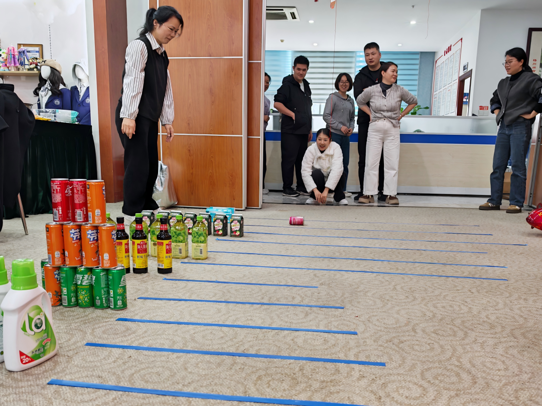 除了智力的角逐,現(xiàn)場還設(shè)置了游戲區(qū)。精美禮品整齊排列,員工們瞄準自己心儀的物件進行滾落投擲。大家不僅收獲了驚喜小禮物,更在歡聲笑語中釋放了工作壓力。