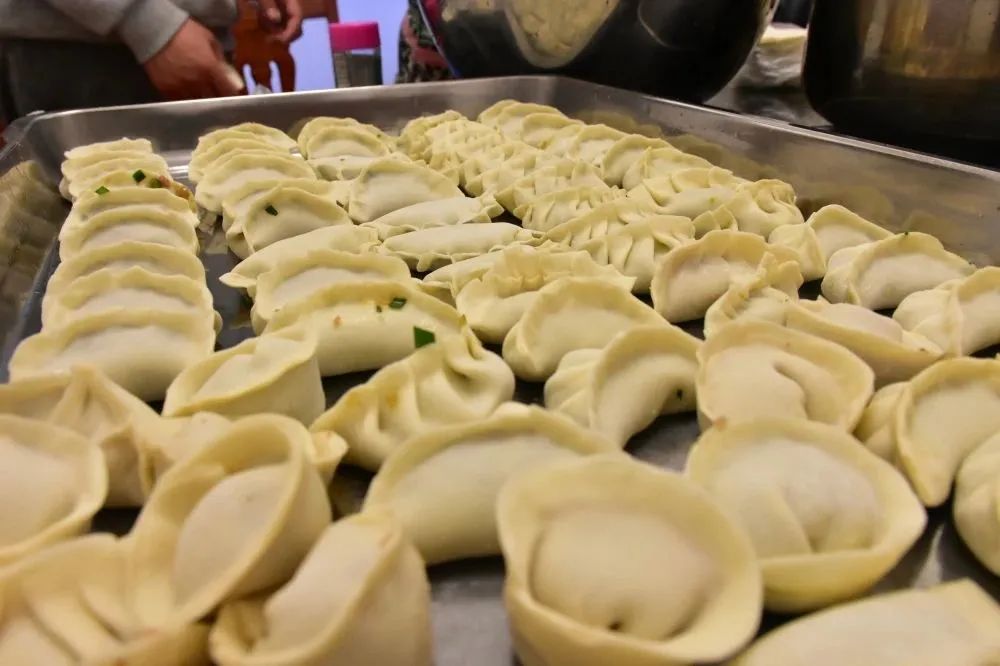 新春伊始,大家齊聚餐廳各顯神通,放餡、捏皮,完整連貫。一會(huì)兒功夫,一盤(pán)盤(pán)大小勻稱(chēng)、緊實(shí)飽滿(mǎn)、形狀美觀(guān)的餃子整齊地?cái)[上了臺(tái)面:月牙狀、元寶狀、柳葉狀等各式各樣的餃子組成了一桌餃子“全家?!?,堪比精美花朵百花齊放。