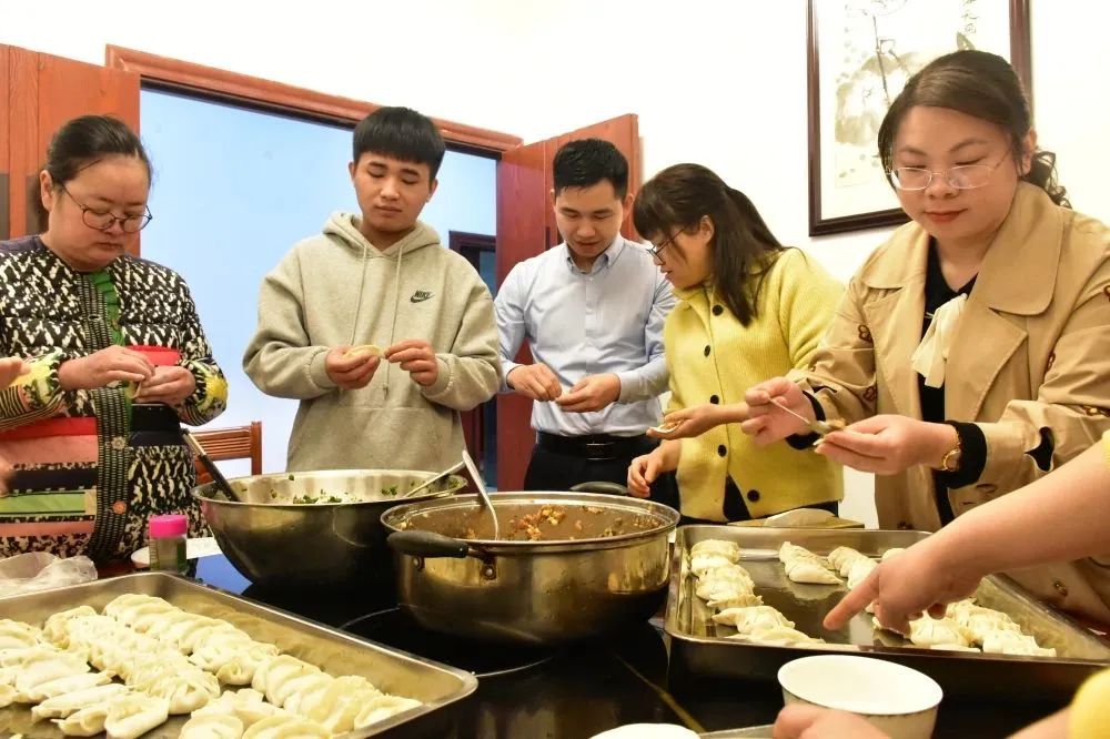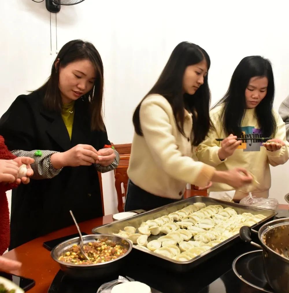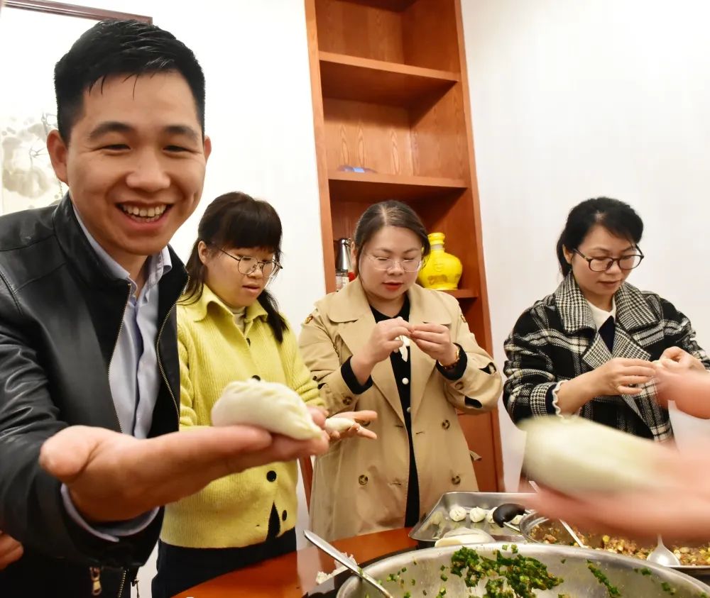 餐廳里歡聲笑語(yǔ),熱鬧非凡,大家邊包餃子邊拉家常,相互觀(guān)摩學(xué)習(xí),加深了彼此的交流,拉近了彼此的距離,增進(jìn)了彼此的感情。