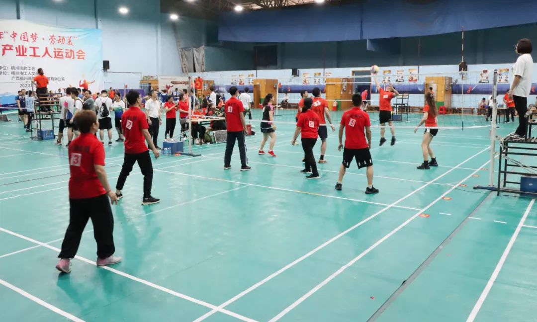 19日上午, 梧州市總工會(huì)黨組書記、常務(wù)副主席、市二級巡視員謝善高在運(yùn)動(dòng)會(huì)開幕式上致辭并宣布運(yùn)動(dòng)會(huì)開幕,參賽隊(duì)伍們井然有序地走進(jìn)了賽場。本次運(yùn)動(dòng)會(huì)共設(shè)氣排球男女子混合比賽、羽毛球男女子混合團(tuán)體賽兩個(gè)項(xiàng)目,百裕世紀(jì)(集團(tuán))有限公司工會(huì)組織了12名產(chǎn)業(yè)運(yùn)動(dòng)員參加了此次工人運(yùn)動(dòng)會(huì),與全市數(shù)十家優(yōu)秀企業(yè)單位的產(chǎn)業(yè)工人運(yùn)動(dòng)員同場競技。 隨著裁判一聲哨響,比賽正式開始。各參賽隊(duì)伍排兵列陣,一幕幕飛身暴扣、攔網(wǎng)截?fù)?、巧妙傳接的精彩競技畫面?yīng)接不暇,現(xiàn)場歡呼聲,加油聲絡(luò)繹不絕。